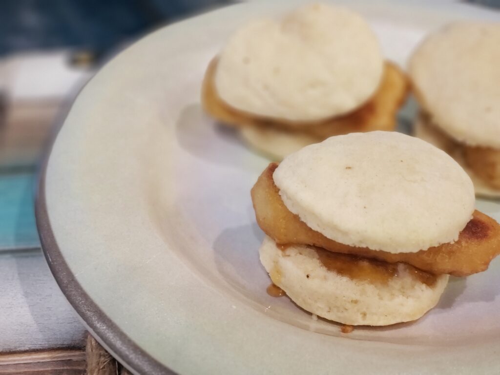 You will need little biscuits and here is the recipe. These are FAST and delicious. Actually, these biscuits are easier than popping a can because these don’t burn like those do – haha. The biscuit is the star of this little app so check out the recipe below.
