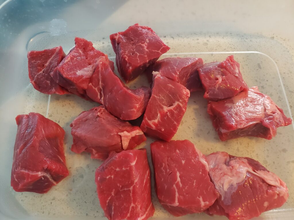 - STEAK – dice it up to bite size pieces