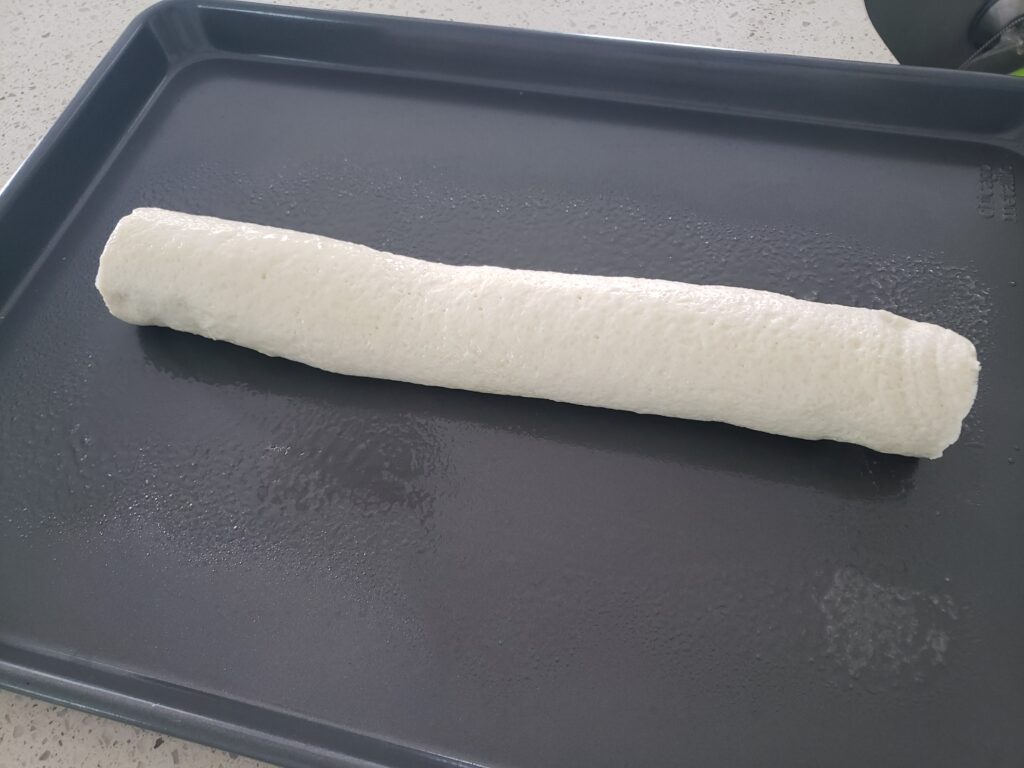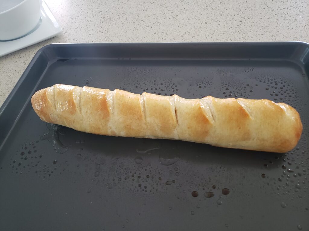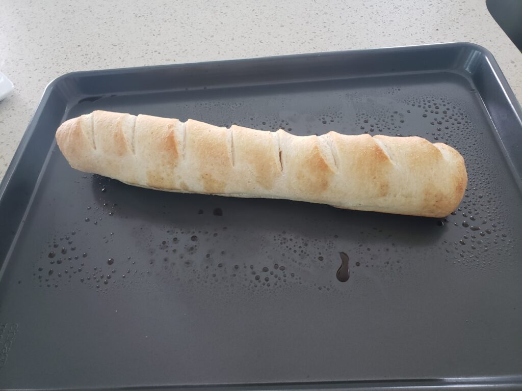 This was brushed with melted butter, garlic salt and Italian seasonings. It was a bit crispy on the outside and light and airy on the inside. That little guy knows what he is doing so just follow the instructions.