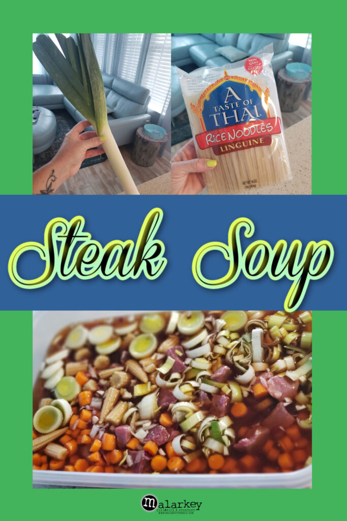 Leeks & baby corns – we just do not use them enough ! So we made this meal around them and we were also craving Thai noodles so before we knew it we had a Steak soup. You can easily replace the steak with chicken, my family was just sick of chicken. You could also throw in some mushrooms while your at it. Personally, I am not a fungus fan so we left those out.